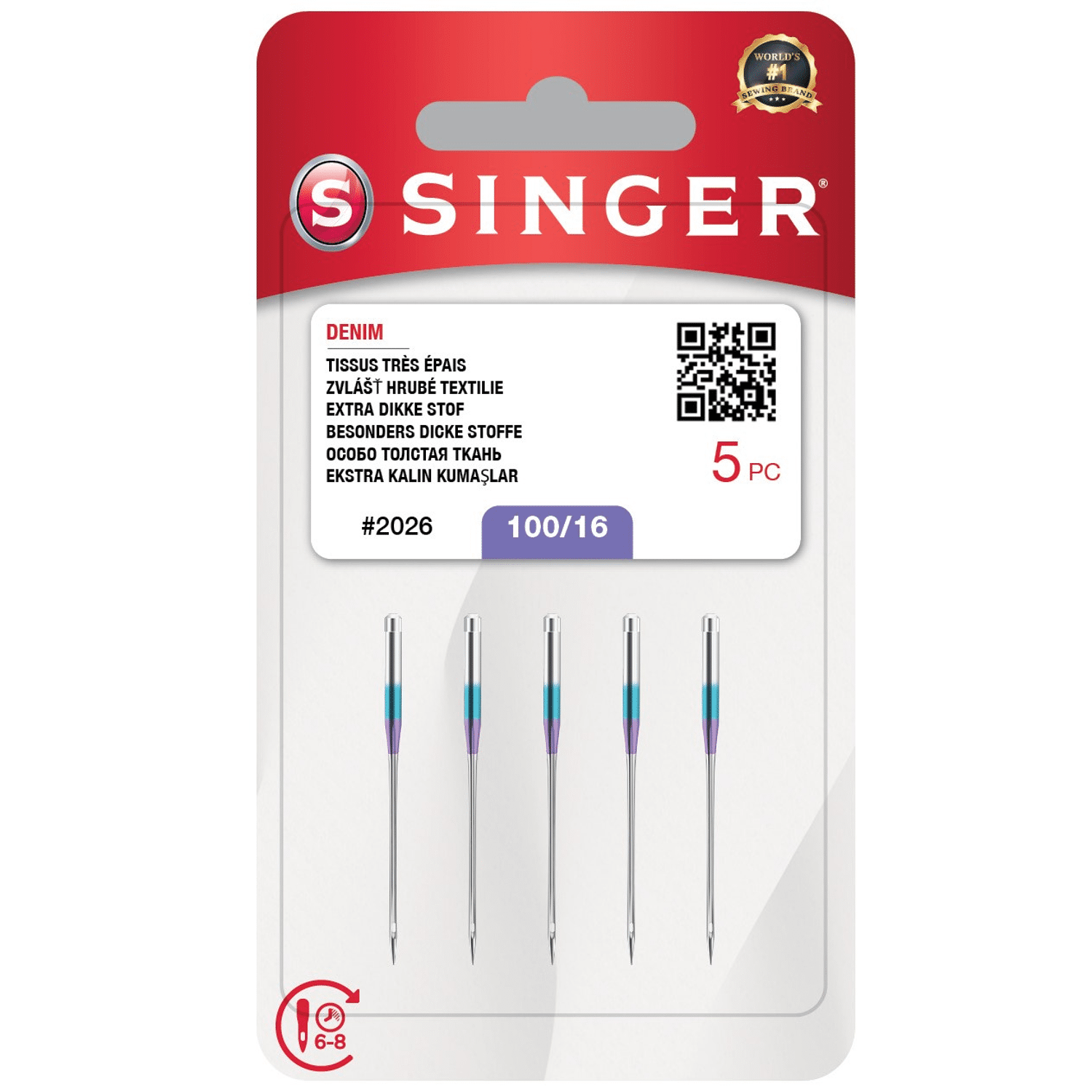 Denim naaimachinenaalden van Singer. Geschikt voor alle machines. 5 naalden per doosje, dikte 100/16.