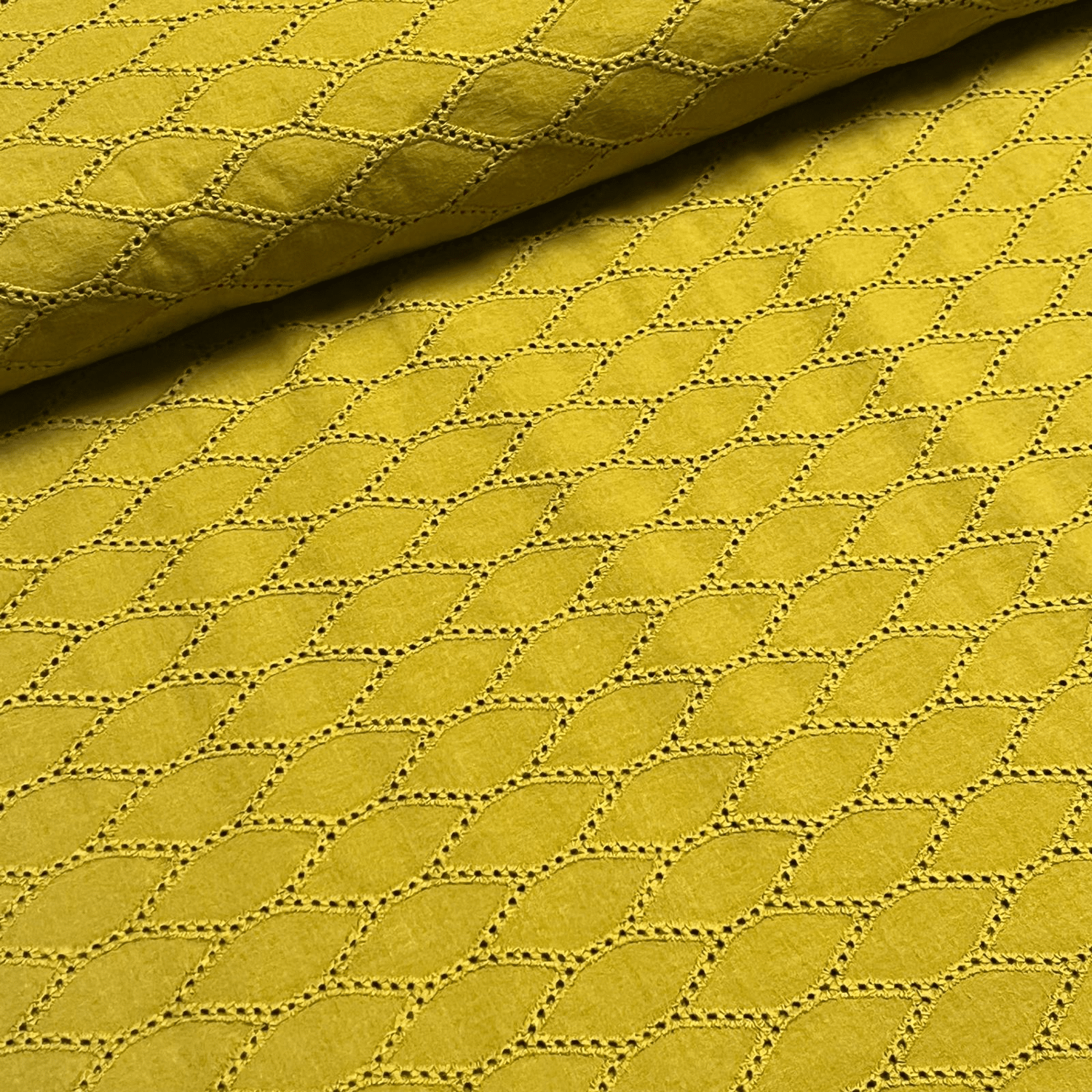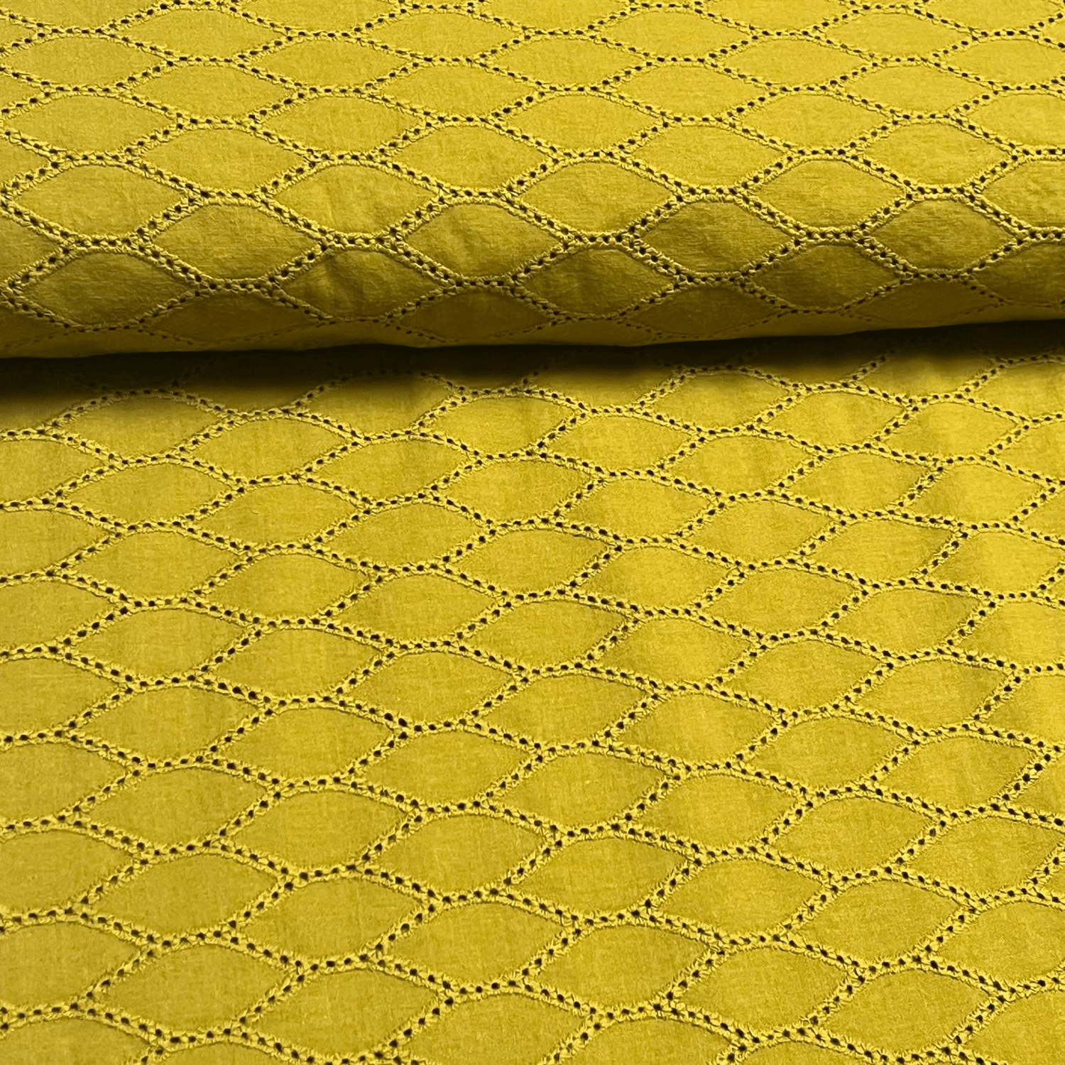 Fijne katoen met een broderie anglaise in mosterdkleur.